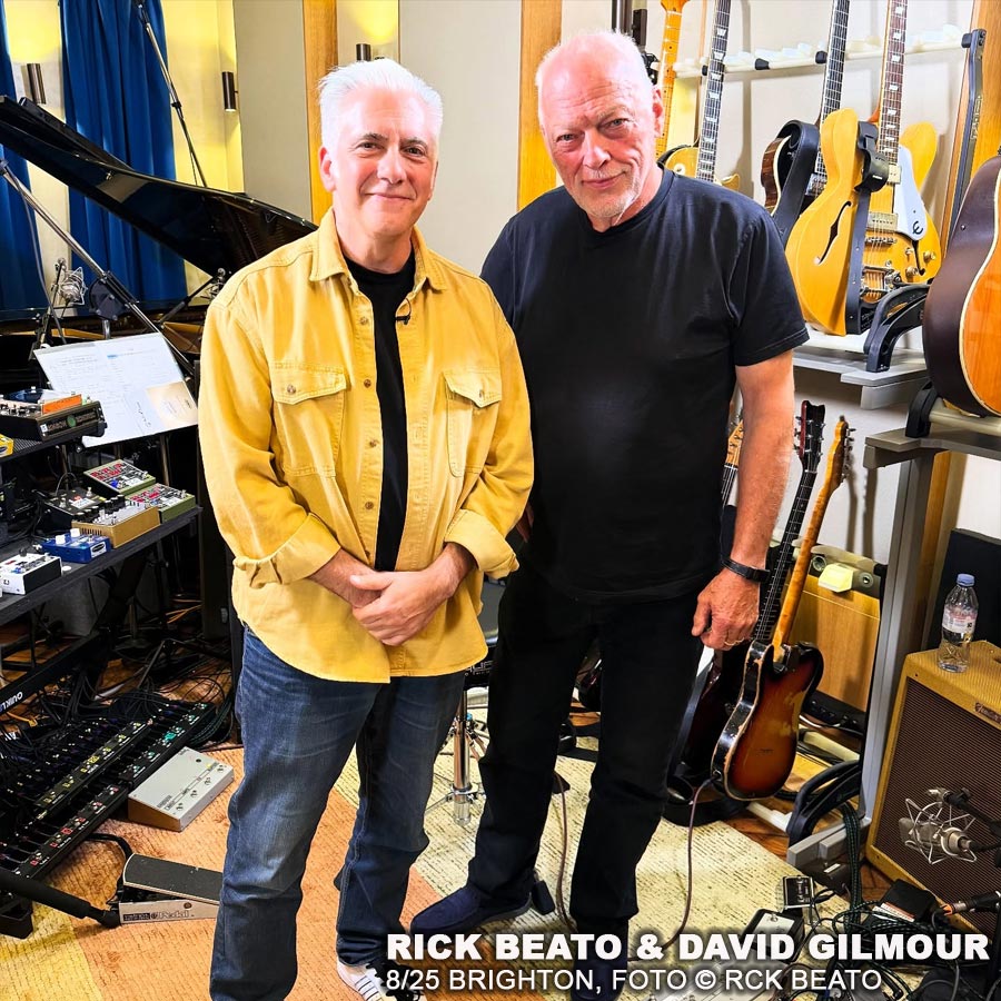 Völlig überraschend trafen sie sich dieses Jahr im August in London erneut. Rick Beato: „Gerade habe ich ein neues Interview mit David Gilmour in London beendet.“ Coole Sache. Ich bin gespannt auf dieses neue Interview. Das Foto zeigt die beiden in Gilmours Medina Studio in Brighton.