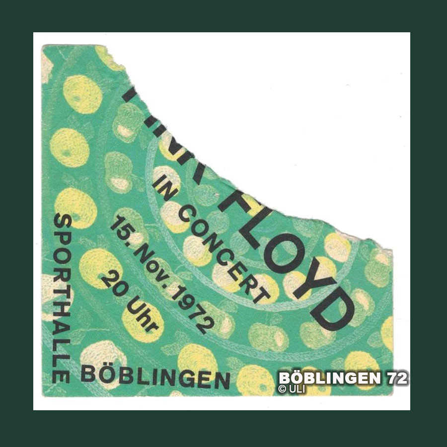 In diese Zeit fällt das Konzert von Pink Floyd in Böblingen November 1972. Irgendwie bot sich die Gelegenheit und es ergab sich, dass ein paar von uns, ich eingeschlossen, das mal anschauen wollten. Genauso hatte ich damals z.B. John McLaughlin in Sindelfingen und John Mayall in Böblingen gesehen.