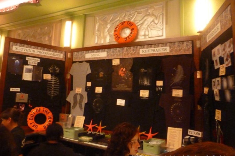 Schließlich der Moment, als die Band auf die Bühne kam! Als letzte Person folgte die barfüßige Kate Bush, begleitet von einem enormen Jubel des Publikums! Die ersten sechs Songs wurden so gespielt, wie man es sich bei einem Konzert vorstellt. Bush als die Frontfrau in der Mitte der Bühne, die Musiker dahinter verteilt, Jon Carin von mir aus gesehen rechts außen, die SängerInnen, einer davon Kate Bushs Sohn Bertie (Albert McIntosh) standen links vor den Musikern. Nach diesen Songs folgte eine theatralische Inszenierung von The Ninth Wave! Die Band war nun ganz im Hintergrund. Es geschah so vieles, dass ich das gar nicht wiedergeben kann. Es endete damit, dass Kate Bush von den Fischen, Schauspieler in Fischkostümen, zuerst ins Publikum und dann aus dem Saal getragen wurde. Sie kam wieder, es gab Standing Ovations, sie bedankte sich und kündigte eine 20-minütige Pause an!