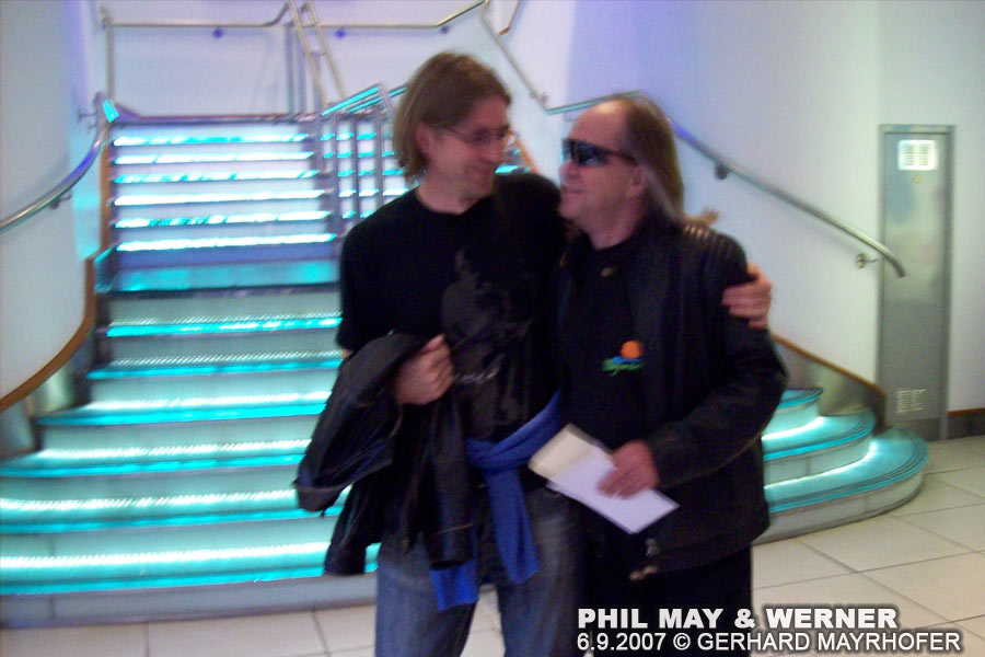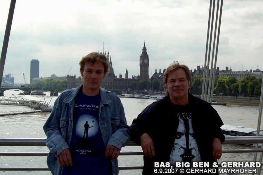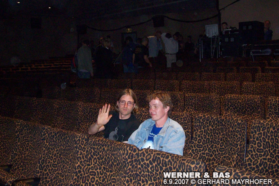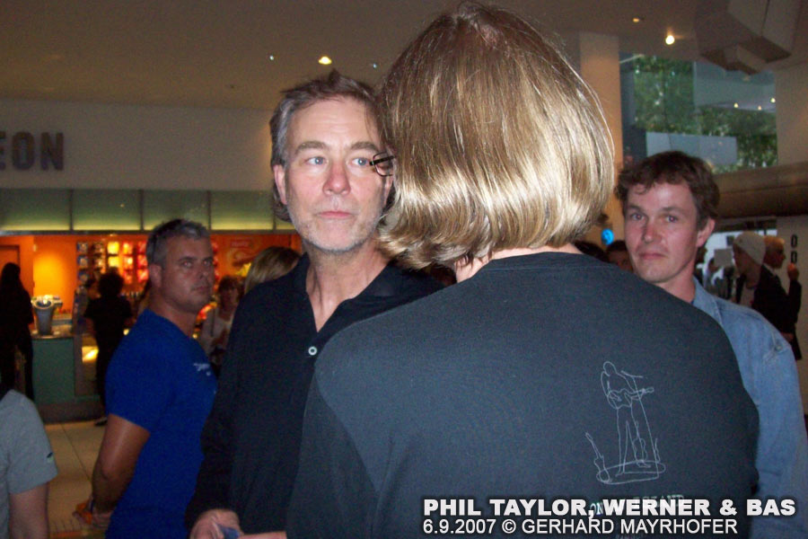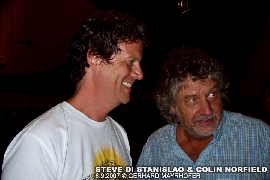 Kaum war er weg, kamen Steve DiStanislao und Colin Norfield direkt auf uns zu! Die waren wirklich gut drauf! Mit den beiden kam ich dann auch etwas länger ins Gespräch. Steve DiStanislao erzählte, das er heute erst angekommen sei. „Back in London. I love England!“ Er meinte noch, das Ganze sei für ihn nach wie vor wie ein Lotteriegewinn. Colin Norfield erzählte mir, dass er morgen nach Deutschland fährt. Er wird mit Herbert Grönemeyer auf Tour sein. Auf meine Frage nach dem The Australian Pink Floyd meinte er, dass er mit dem Manager nicht mehr zusammen kommt und er es nicht nötig habe, um jeden Preis mit ihnen zu arbeiten. Natürlich ging es dabei um das liebe Geld.
