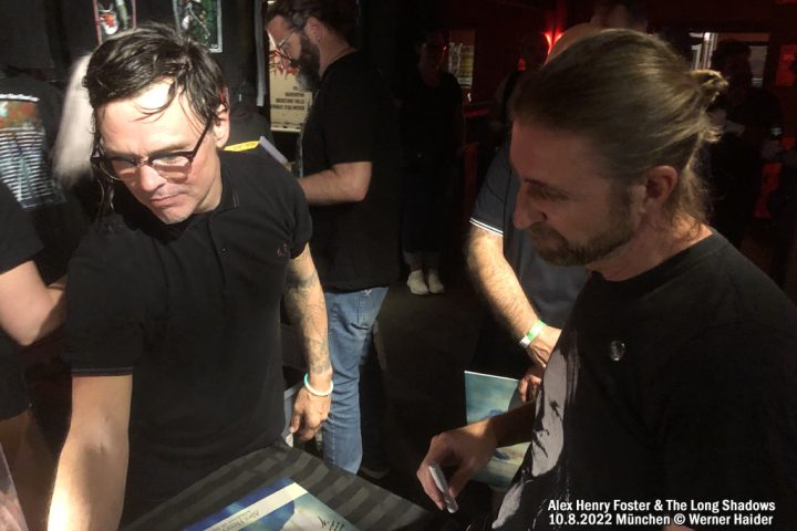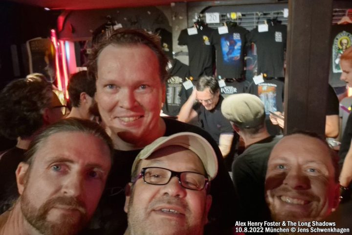 Die Band hat eine unglaubliche Dynamik, Gitarrist mit Geigenbogen, irre Sounds, herrlich minimalistische Arrangements, selbst bei drei Gitarren und Keyboard. Bei THE HUNTER spielte der zweite Gitarrist dann noch ein zusätzliches Schlagzeug, irre! Und welch unbändige Power von Alex' Stimme aussgeht! Er lebt jeden Song und ist ein wahnsinnig sympathischer Typ, der sich mehrfach beim Publikum bedankte und uns nach der Show herzlich umarmte. Ich wünsche ihm von ganzem Herzen noch viel mehr Erfolg, dass er größere Hallen bespielen möge (in dem Backstage spielen viele lokale Münchner Bands, auch meine Wenigkeit stand 2006 schon mal auf der Bühne mit der Gothic-Band KNIGHTS OF NESHAMAH – Video dazu bei YT). Das nächste Mal bin ich wieder dabei! Thanks Alex, you are unbelievable!