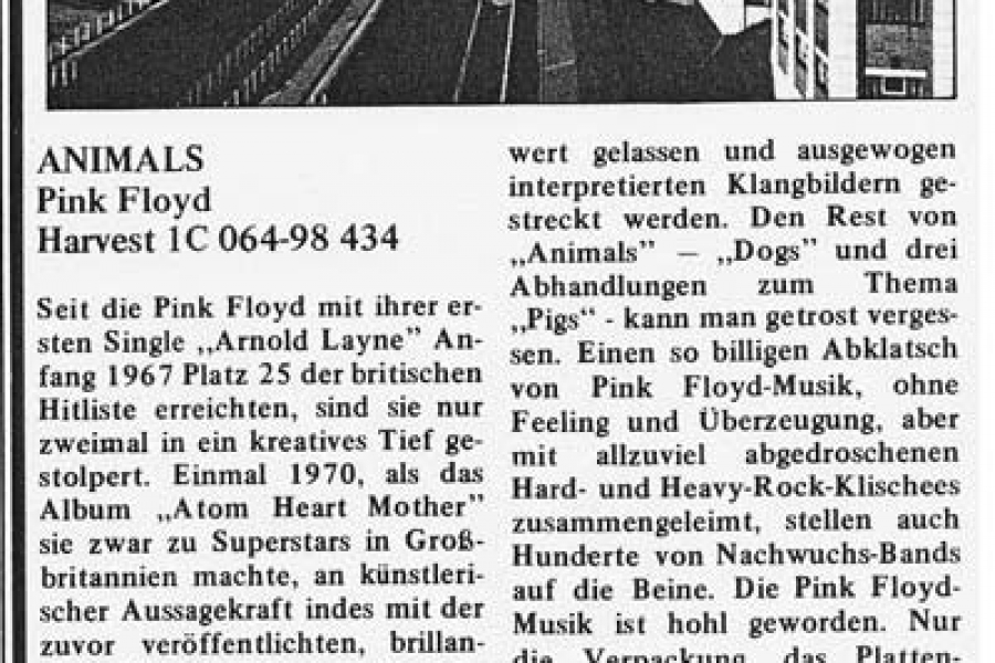 Wenn sie doch endlich eine wirklich gute Box dieser Tour veröffentlichen würden,es wäre ein Traum.Mit einem Live Album drin und vieleicht einer Blue Ray.Ich empfinde ANIMALS als eines der größten Meisterwerke der Rockgeschichte.Nach DARK SIDE das ich als dreizehn jähriger Knirps geschenkt bekam ,war es das erste Album von Floyd das ich mir selber gekauft habe.Die ungetrübte Begeisterung hält bis heute.Vieleicht macht die Band uns ja die Freude und lassen die Träume von einer Box wahr werden.