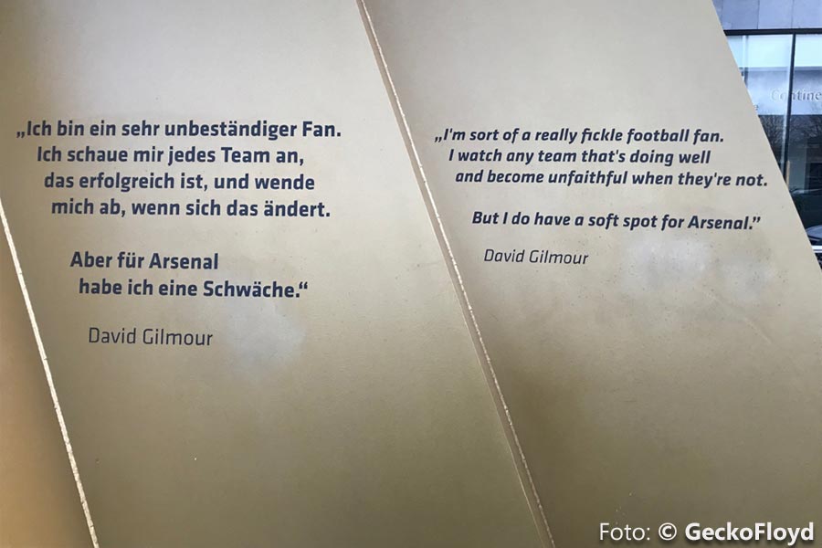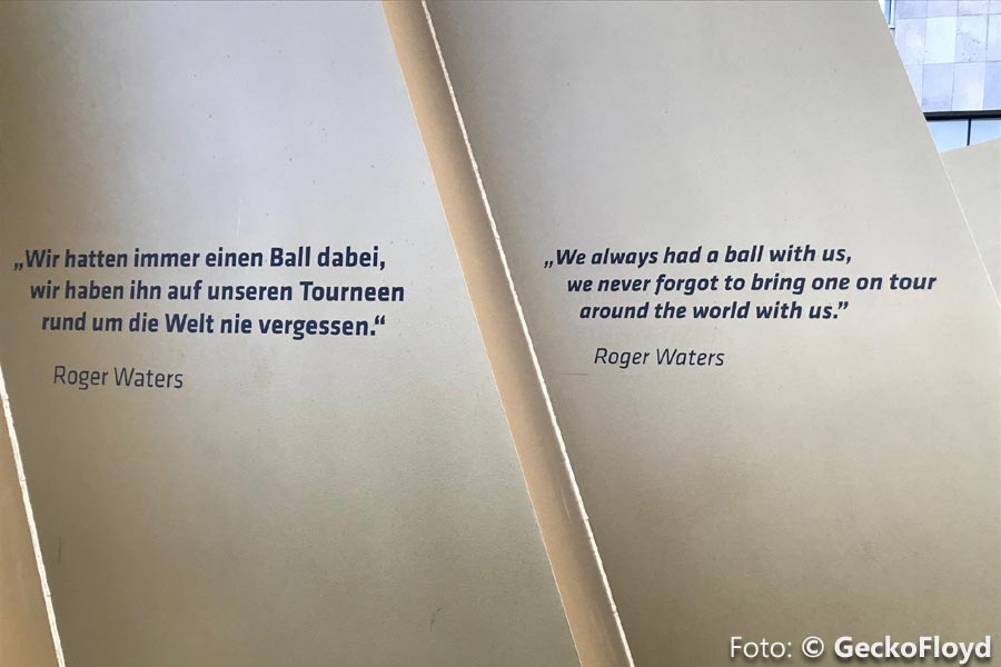 Dann haben wir schließlich – ausgehungert und durstig, wie wir waren – erstmal dick Kaffee und Kuchen gegessen und noch einen Abstecher ins Deutsche Fußball-Museum gemacht, dort vor dem Eingang, witziger weise an goldenen Säulen sind Statements angebracht von David Gilmour und Roger Waters über Fußball, und Bilder und Texte von Fußballspielen mit Pink Floyd, nette Sache, auch hier also Dortmund voll im Einfluss der Floyds!