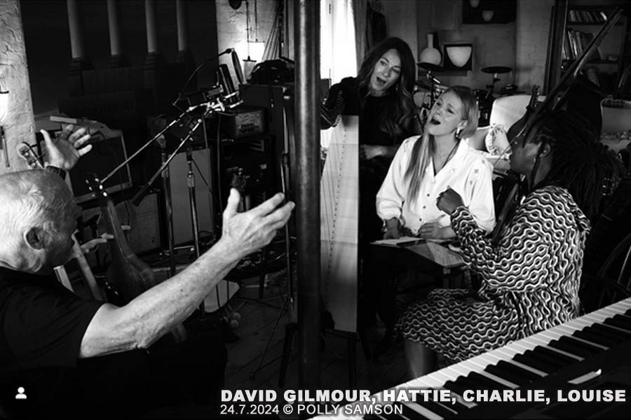 Neue Fotos von David Gilmour’s Rehearsals mit den Sängerinnen Louise Marschall und Charlie und Hattie Webb, die ihn demnächst auf Tour begleiten werden, sind aufgetaucht. In zwei Monaten wird in Rom die Bühne stehen!