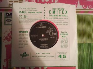 Die Single-Hülle ist jene von Columbia, das heißt, sie ist einfach nur Grün, mit der „Columbia Aufschrift“ und Columbia Emi Logos. Auf der Hinterseite sind wohl jene Informationen, welche 1967 für Besitzer von Plattenspielern relevant waren. 😉