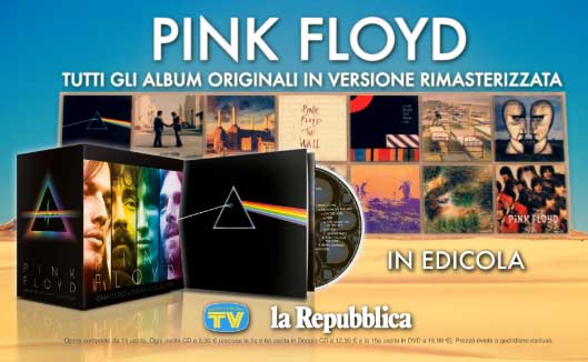 Die italienische Zeitung „La Repubblica“ bietet ihren Lesern jede Woche ein Pink Floyd Album als Beigabe an! Den Anfang machte „Dark Side of the Moon, dazu gab es auch einen Schuber.