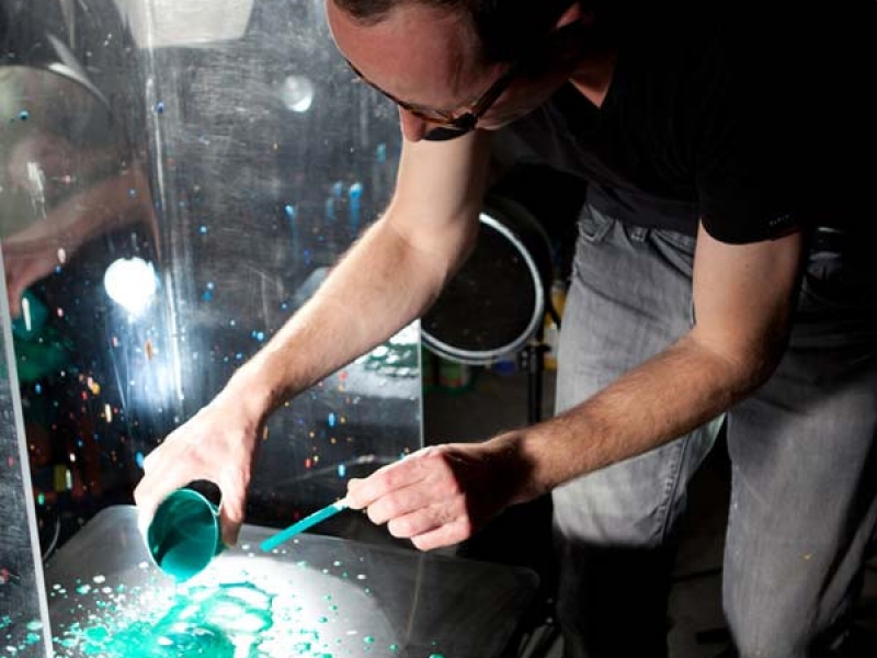 Er hatte bei seiner Arbeit „Sonic Sculptures“, ein Zusammenspiel aus Klang, Form und Farbe, eine Maschine gebaut, die Schallwellen in Bilder verwandelt. Bei seiner Musikauswahl setzt er sich keine Grenzen durch Epochen oder Stile und zeigt so unterschiedliche Titel wie „Time“ von Pink Floyd und „Transistor“ von Kraftwerk.