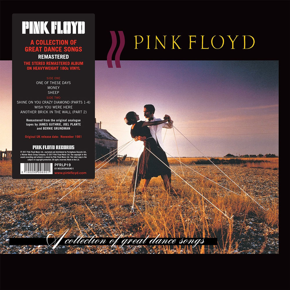 Pink Floyds „A Collection Of Great Dance Songs“ erschien ursprünglich 1981 und wurde 2001 von der RIAA mit Doppelplatin ausgezeichnet. Die Zusammenstellung enthält alternative Mixe und Versionen von Pink-Floyd-Klassikern, darunter „Shine On You Crazy Diamond“, „Another Brick In The Wall (Part 2)“ und „Money“.
