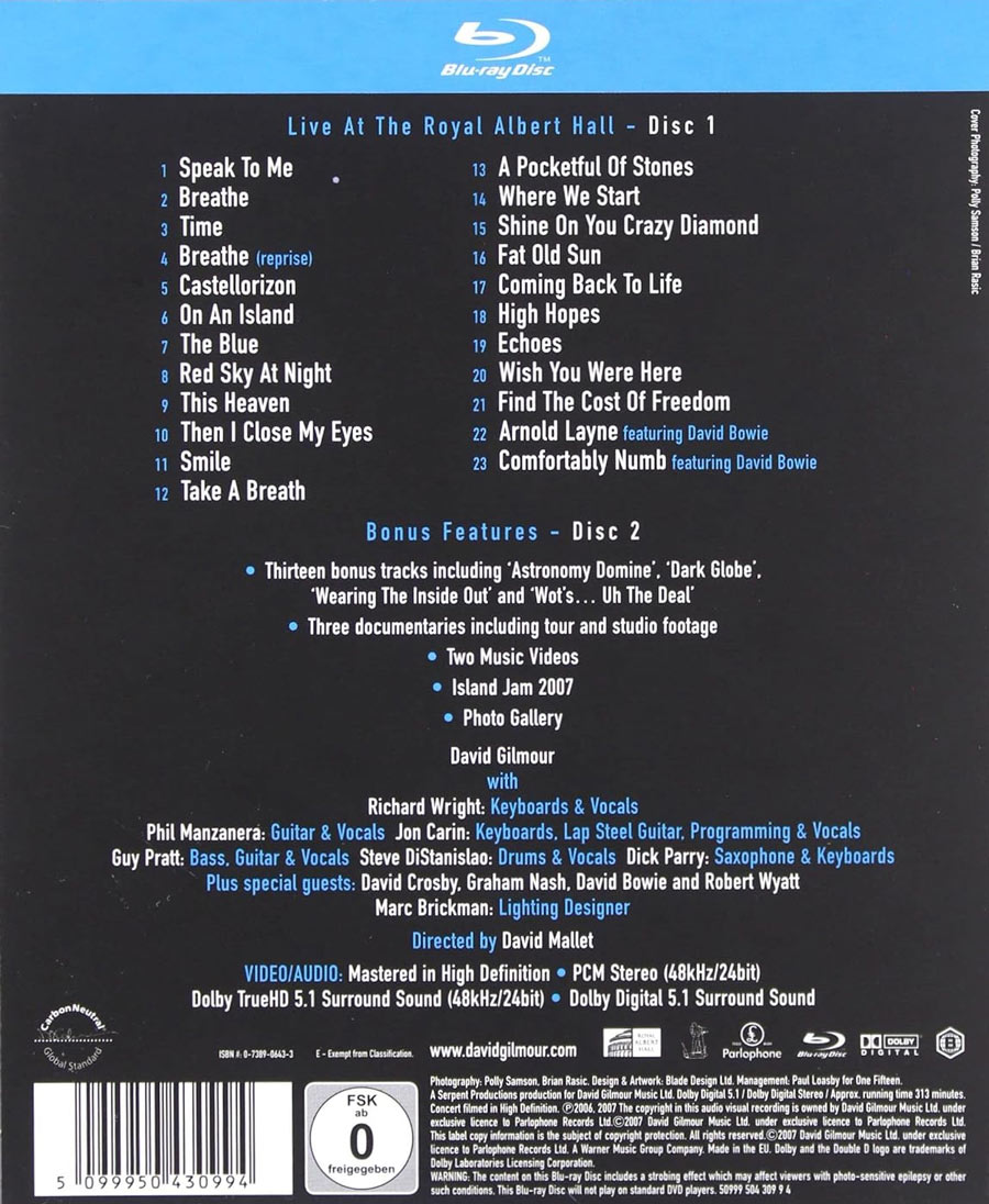 - JPC: David Gilmour Remember That Night – Live At The Royal Albert Hall 2006 2 Blu-ray Discs