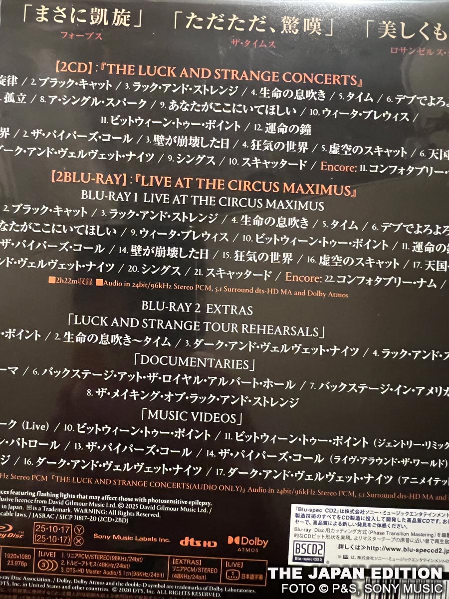 - JPC: David Gilmour The Luck And Strange Concerts (Japan Edition) 2 CDs, 2 Blu-ray Discs