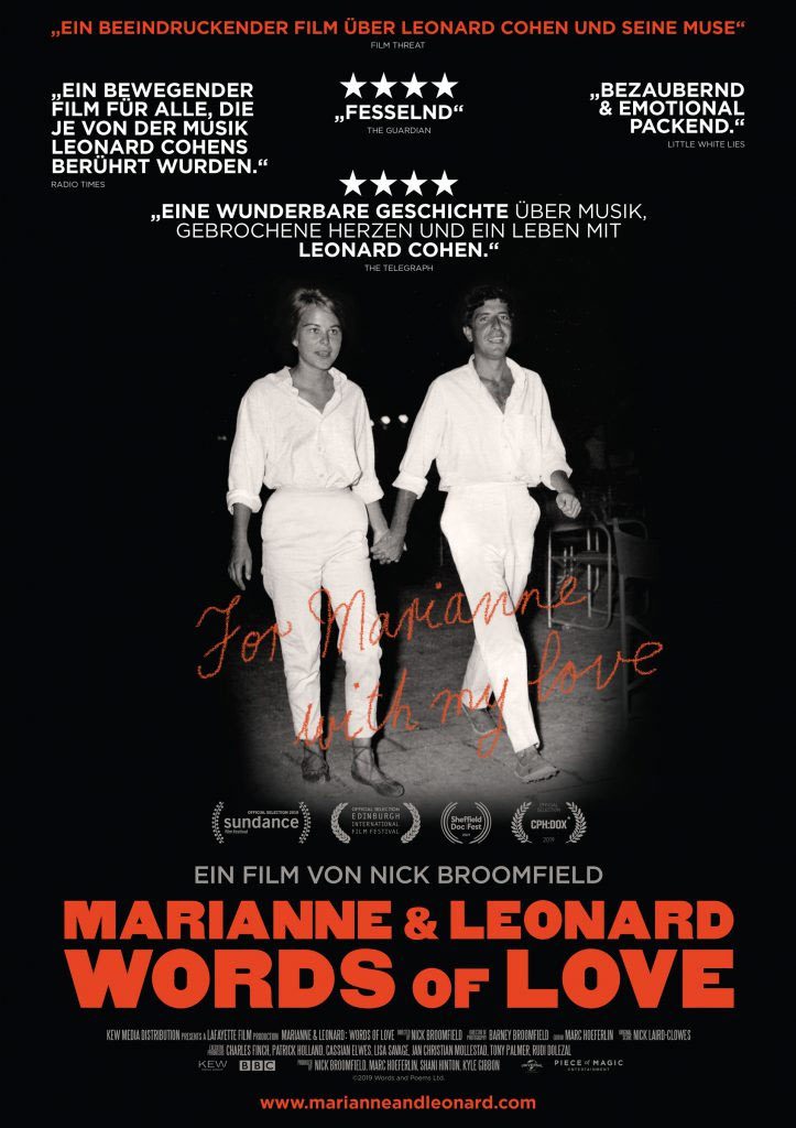 Am 7.11., dem dritten Todestag von Leonard Cohen, startet der neue Dokumentarfilm “Marianne & Leonard: Words of Love” von Nick Broomfield in unseren Kinos. Der Film erzählt die bewegende Liebesgeschichte zwischen Leonard Cohen und seiner norwegischen Muse Marianne Ihlen. Ihre Liebe begann 1960 auf der griechischen Insel Hydra und war nicht nur die Inspiration von „Suzanne“ sondern ein lebenslanger Einfluss auf Cohens unsterbliche Musik.