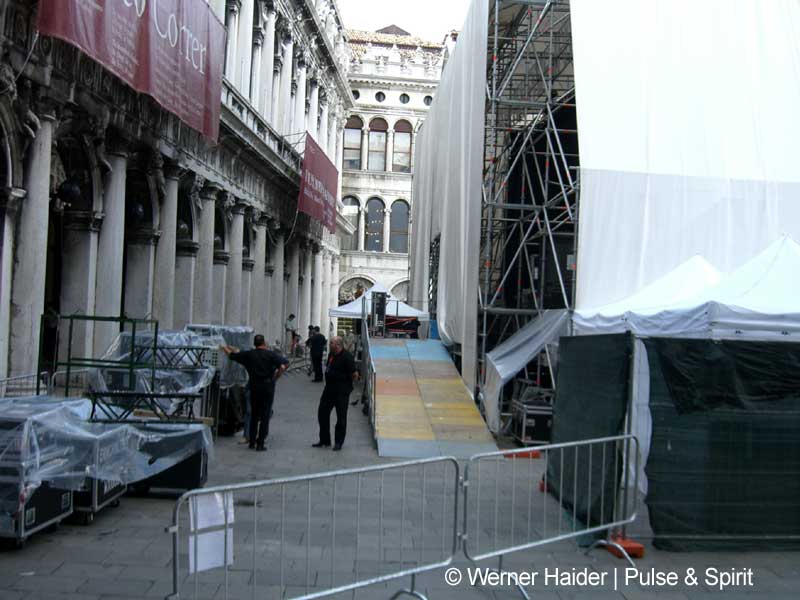 Als ich zum Hotel zurückging, sah ich, wie ein Tontechniker sein Richtmikrofon vor der Sankt Markus Basilika abbaute. Er hat dort Dezibelmessungen während des Konzerts durchgeführt, damit da nichts abbricht.