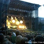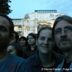 Die Arena in Wien ist ein wunderbarer Ort für ein Open Air Konzert! In diesem ehemaligen Schlachthof finden seit 1976 Konzerte und Veranstaltungen statt. Aus der früheren Industrie-Architektur stammende kahle Ziegelwände, teilweise mit Graffiti versehen, machen den besonderen Charme aus. Zuletzt sah ich hier 1997 Neneh Cherry. Es herrschte eine angenehme Atmosphäre. Sigur Rós waren für 21:20 Uhr angekündigt betraten allerdings schon um 20:50 Uhr die Bühne und begannen ihr außergewöhnliches Konzert vor 3000 begeisterten Menschen.