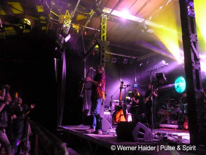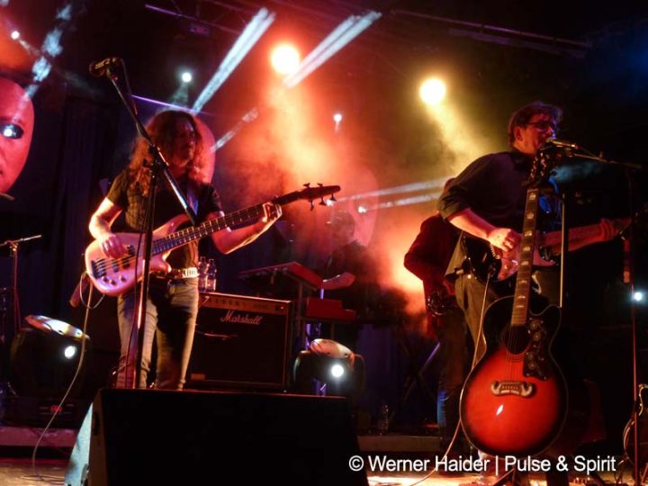 Crazy Chains begannen das Konzert mit der kompletten Darbietung des “Dark Side Of The Moon” Albums. Mir gefiel daran besonders gut, dass sie sich auch Raum und Zeit für längere Jam-Sessions nahmen, z.B. bei “On The Run”, als sie plötzlich “When You`re In” von “Obscured By Clouds” hineinspielten. Als bei “Great Gig In The Sky” keine Sängerin den Gesangspart übernahm, spielte Ewald die Melodie mit der E-Gitarre! Das passte hervorragend, eine wohltuende Abwechselung! Floyd selbst ließen auch schon Hühnergackern einspielen. Das Instrumentalstück “Any Colour You Like” wurde wiederum für eine ausgedehnte Jam-Session genutzt, so wie es Floyd in den 1973-75 auch immer taten! Sehr schön! Mir gefallen solche Eigeninterpretationen immer viel besser, als wenn alles haargenau 1:1 nach gespielt wird.