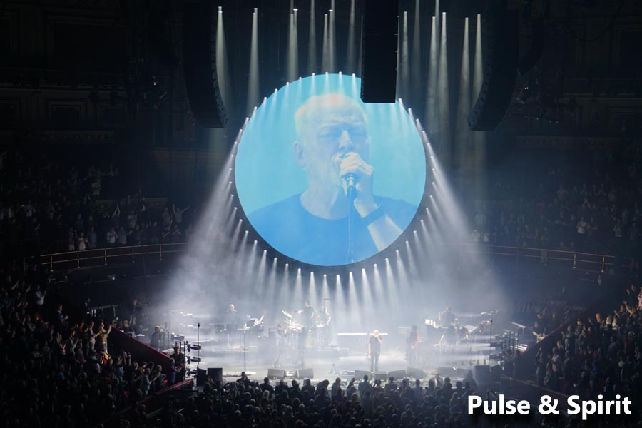 Ach ja, da war noch was bei In Any Tongue. Gilmour machte einen kleinen Fehler! Er muss da einen Knopf, auf dem vor sich liegenden Guitar-Pedalboard, versehentlich gedrückt haben. Die ersten 30 Sekunden des Solos klangen, sagen wir mal so, eher unpassend! Ich bilde mir ein gesehen zu haben, dass er sich darüber ärgerte und daraufhin dem Gitarrenkabel mit dem Fuß einen Tritt verpasst zu haben. Danach gab es aber kein Halten mehr. Um mich zu wiederholen und in der Handwerkssprache zu bleiben, er nagelte das Solo fest in den altehrwürdigen Bühnenboden der Royal Albert Hall! Dort, wo schon Pink Floyd’s Roadies Nick Mason’s Schlagzeug mit Nägeln befestigten und für große Irritation sorgten.