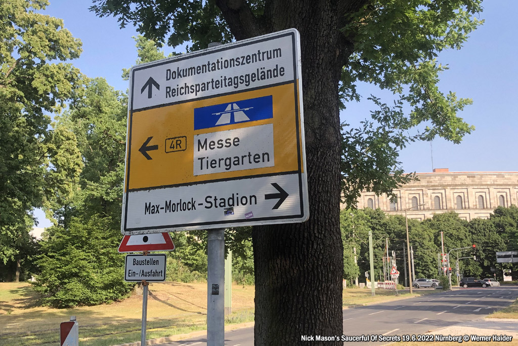 Boris brachte mich zum Hotel, das aussah, als sei ich in Moskau gelandet. Aber alles gut, toll ausgestattet, mit Lift und gekühlten Räumen usw. GeckoFloyd, der am Münchener Hauptbahnhof seinen Spaß hatte und rund 60 Minuten später in Nürnberg eintraf, Boris und ich fuhren rüber zur Meistersingerhalle. Bei Affenhitze spazierten wir zum nächstgelegenen Biergarten, um dort Abkühlung zu erfahren. Auf dem Weg dorthin erzählte mir Boris einiges über die speziellen Gebäude, an denen wir vorbeikamen.