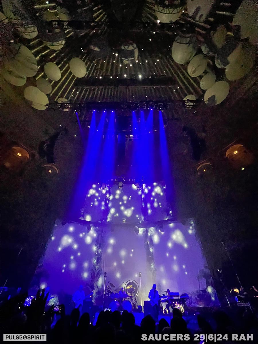 Bei den ersten Songs bis See Emily Play war der Stecker der Lichtanlage nicht in der Steckdose und die Saucers wurden von einer sehr reduzierten Lichtanlage angeschienen. So hielt Mason seine erste Rede ohne Spot im Verborgenen. Ich sah aber durchwegs amüsierte Gesichter, die Band schien ihre Gaudi zu haben, trotz oder wegen des Lichtausfalls. 🙂