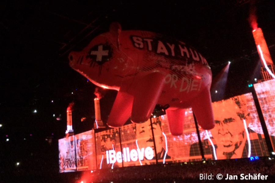 Zur Musik: Aus unserer Sicht (Seite/unterer Rang) nicht zu laute, perfekt angestimmte Musik, schöner wuchtiger Bass. Die Damen waren klasse unterwegs. Ja, ich denke, wir haben sehr genau darauf geachtet, er hat live gesungen. Wie schon oft erwähnt, bombastisch Pigs, Dogs… aber das Sahnehäubchen: Wait For Her, Oceans Apart, Part Of Me Died, Comfortably Numb.