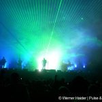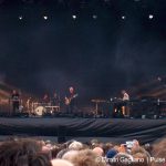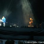 Da ich mir die “neue” Setlist (Klam) bewusst nicht vorher angeschaut hatte, ging ich davon aus, dass wir im 2. Teil “The Great Gig in the Sky” hören werden. Diese Hoffnung hat sich allerdings nicht erfüllt. Allerdings hat sich das Konzert im 2. Teil durch die Dunkelheit und durch den starken Regen (ja auch durch den!!) zum besseren gewendet. Wir saßen nicht mehr auf unseren unbequemen Klappstühlen, sondern standen neben dem Mischpult, wo wir durchgenässt – aber für mich mit einem sehr emotionalen Gefühl – Fat old sun, High Hopes und ein tolles Echoes verfolgen konnten.