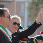 The real huge crowd for the musician took place the next day, however, at the Aprilia school auditorium dedicated to Carlo and Nello Rosselli, where he met with students and the public. Outside the institute his fans were able to follow the event through some screens, and many of them felt offended by that gate closed, defined as a “wall” between them and the artist who has made many to fall ‘till today, and had to settle for a few tens of meters to see their idol during the opening ceremony of the “monument to the dead without burial of the landing”, a stele that will remain for future reference within the school in Carroceto street. A gazebo was set up outside, where a special postmark was affixed to a postcard – it will be available for a few more days before being destroyed. At the side of the musician stood Harry Shindler, towards whom his affection and concern were tangible gestures and glances that showed strong and sensitive human, so different from the despotic person as it has always been depicted in the show business. In front of us there wasn’t a rock star but a man who has shown everyone to be naked, fragile and excited. The very moment he laid his palm on the monument dedicated to his father and all the victims of the massacre, all present stood and around him fell silence and many tears.